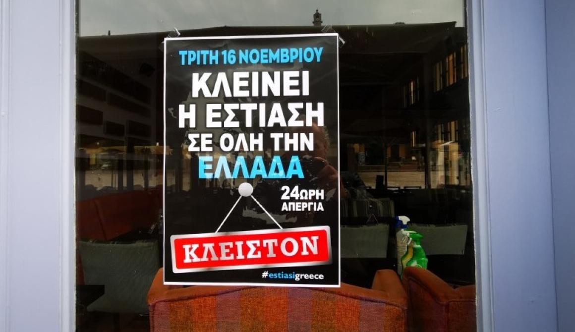 Την Τρίτη 16 Νοεμβρίου 2021 πραγματοποιήθηκε η Πανελλαδική κινητοποίηση του 24ώρου κλεισίματος της Εστίασης.
