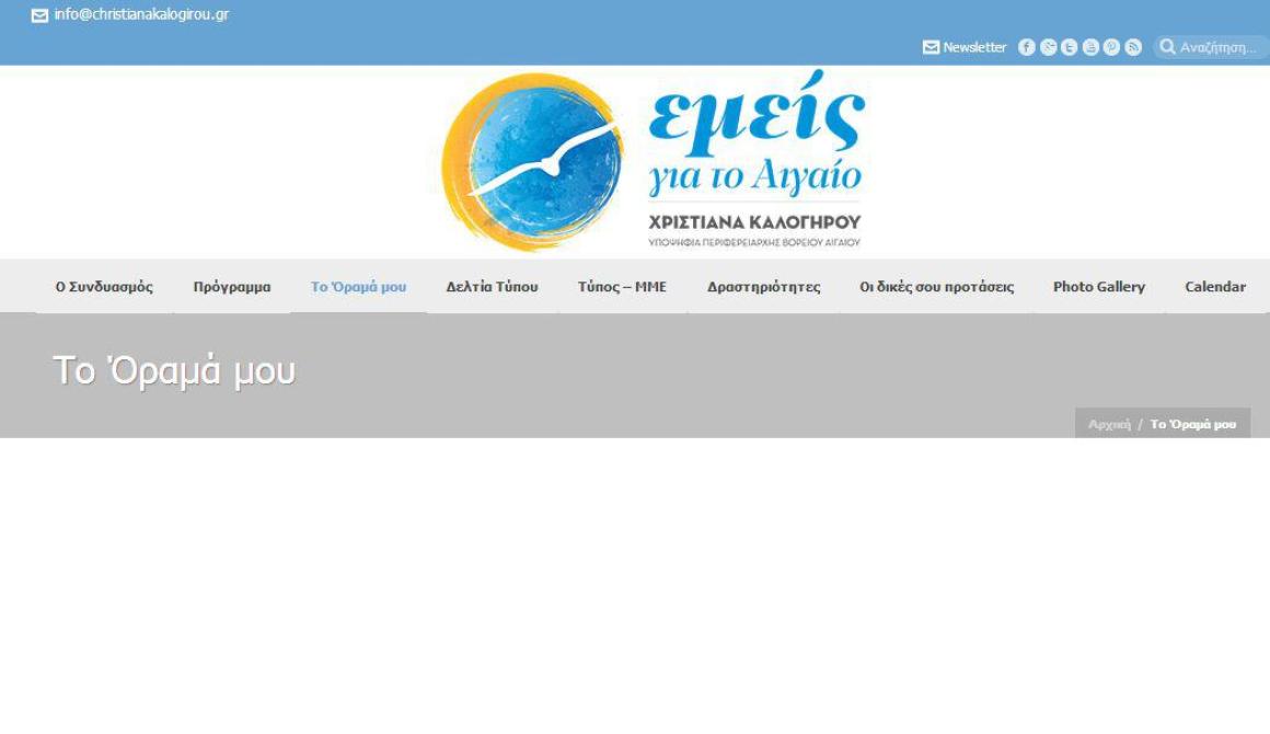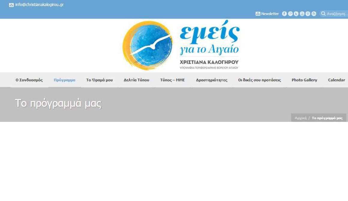 24 ώρες πριν ολοκληρωθεί η προεκλογική εκστρατεία κάνουμε μια επίσκεψη στην ιστοσελίδα της Χριστιάνας Καλογήρου. Η υποψήφια Περιφερειάρχης στην ιστοσελίδα της μας καλεί να κάνουμε κλικ στην ενότητα " Πρόγραμμα" και "Το Όραμά μου".