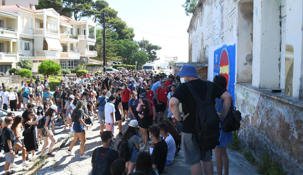 Με τον ίδιο φιλόξενο τρόπο που υποδέχτηκε ο κόσμος της Μυτιλήνης τους κατασκηνωτές, έτσι κι εκείνοι θέλησαν να αφήσουν ένα καλλιτεχνικό αποτύπωμα του περάσματος του Αντιιμπεριαλιστικού Διημέρου από τη Μυτιλήνη. Το γκράφιτι ανέλαβαν καλλιτέχνες της ΚΝΕ και συνέβαλαν και μαθητές με το μεράκι και τον ενθουσιασμό τους, φτιάχνοντας το λογότυπο του Διημέρου, αναδεικνύοντας ότι «Σε Ελλάδα και Τουρκία ίδιος ο εχθρός: ΝΑΤΟ - κυβερνήσεις - καπιταλισμός. Ο σοσιαλισμός είναι το μέλλον!».