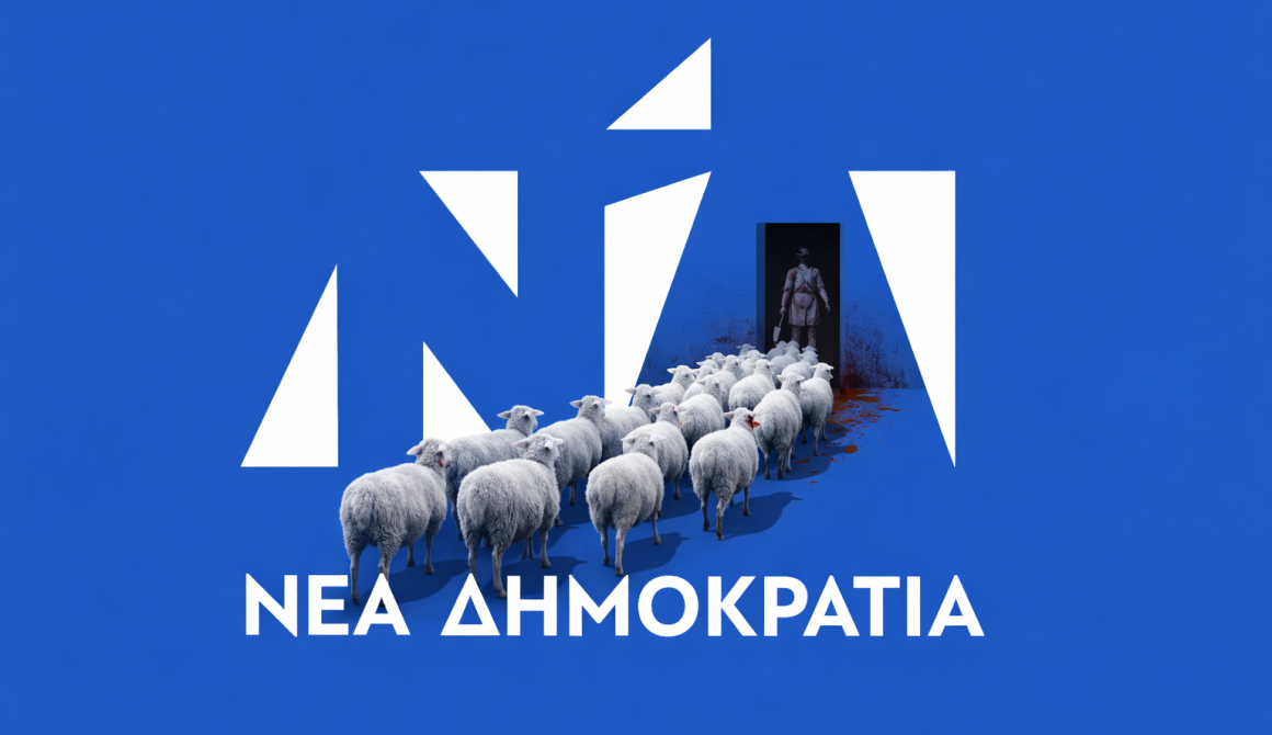 Η Νέα Δημοκρατία συγχαίρει τη Νέα Δημοκρατία με φόντο ζώα που οδηγούνται στη σφαγή!