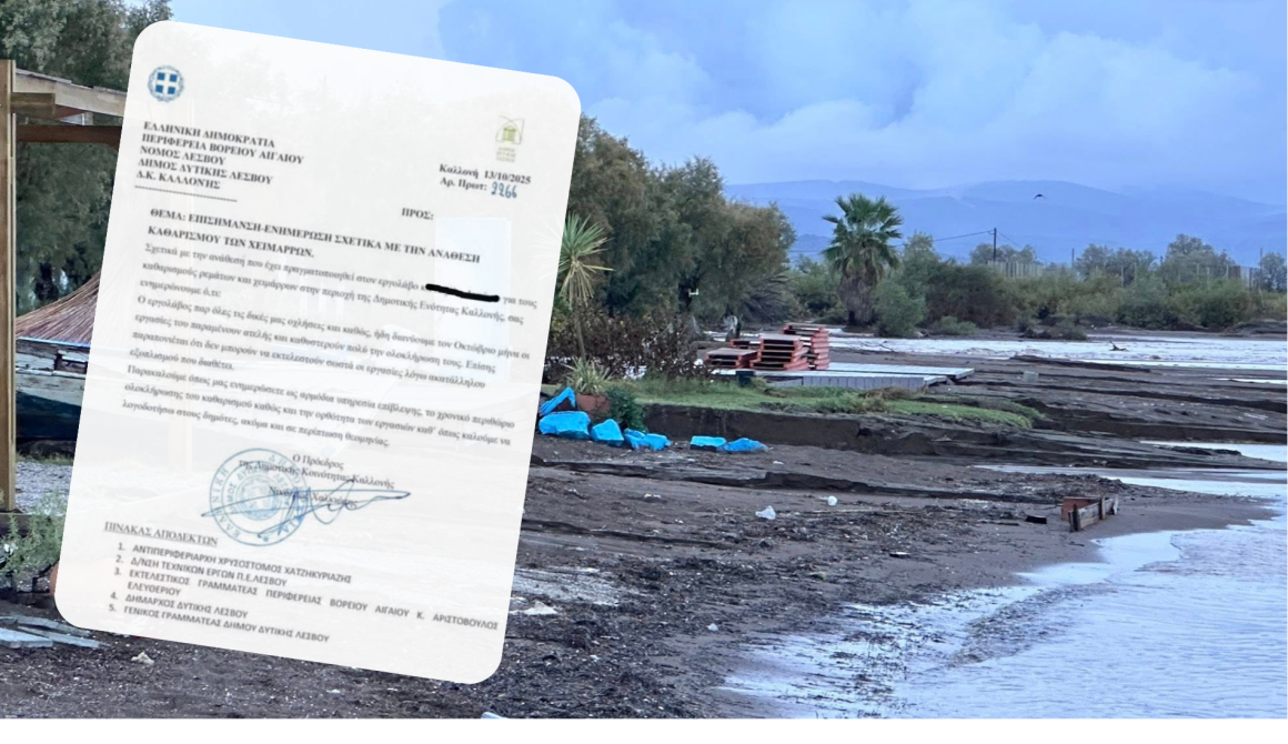 Αξίζει να τονιστεί ότι ουσιαστικά το έγγραφο απευθύνεται προς την Περιφέρεια Βορείου Αιγαίου που και η υπεύθυνη για τον καθαρισμό χειμάρρων και ρεμάτων. Το έγγραφο για λόγους διοικητικούς κοινοποιήθηκε και στο Δήμο Δυτικής Λέσβου.