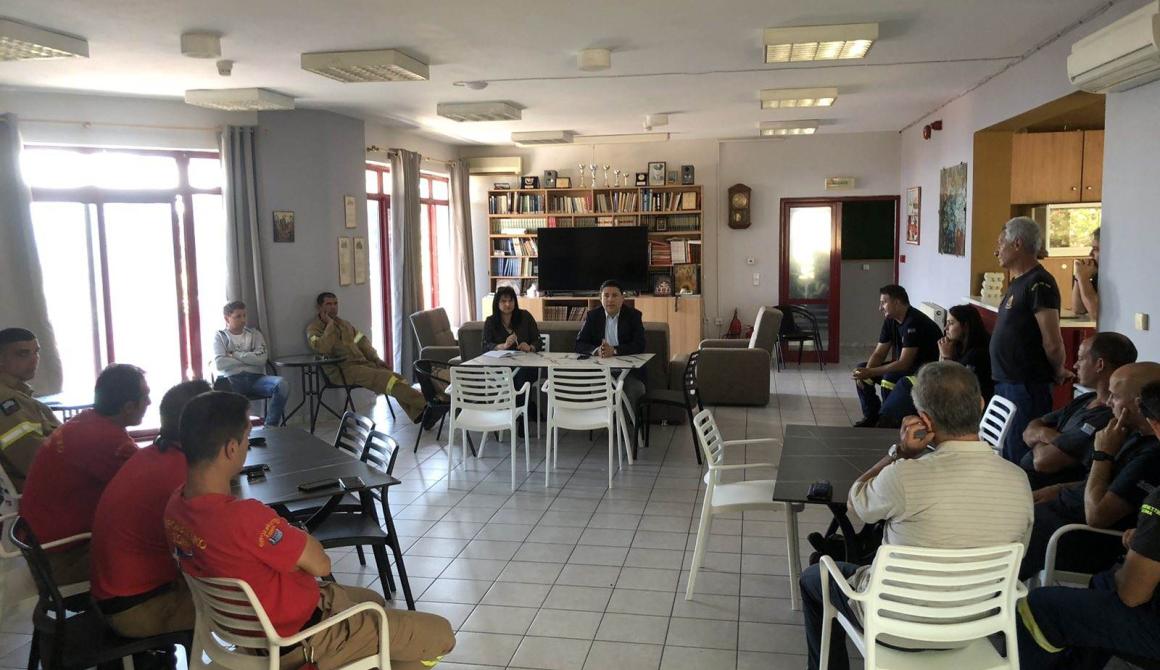 Ο Γιάννης Μπουρνούς αρχικά συναντήθηκε με τον Διοικητή Πυροσβεστικών Υπηρεσιών Βορείου Αιγαίου, κ. Κυπριωτέλλη και στη συνέχεια είχε την ευκαιρία να συνομιλήσει με τους μόνιμους και εποχικούς πυροσβέστες.
