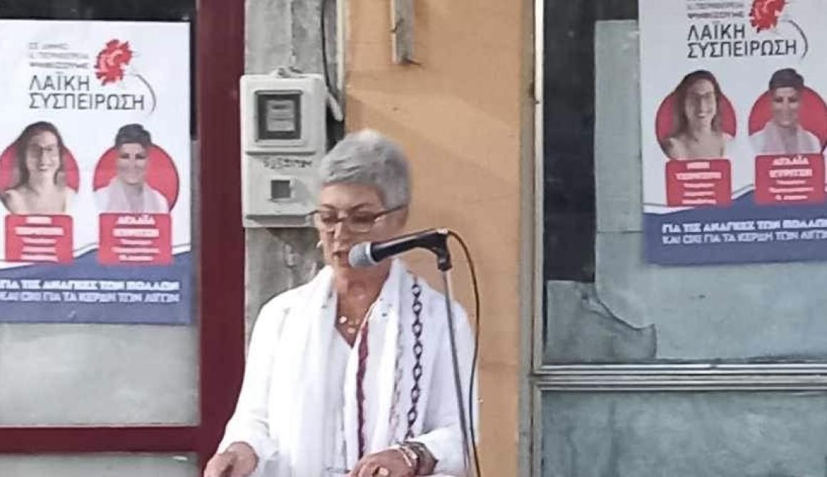 Η υποψήφια δήμαρχος Δήμου Μυτιλήνης Νίκη Τσιριγώτη τόνισε πως την Κυριακή 8 Οκτώβρη έχουμε δύο επιλογές: ή θα δώσουμε συγχωροχάρτι στην εγκληματική πολιτική που μας έφερε ως εδώ και στην οποία συγκλίνουν όλα τα κόμματα, οι υποψήφιοι και εκλεγμένοι τους, ή θα ενισχύσουμε τα ψηφοδέλτια της Λαϊκής Συσπείρωσης, που στηρίζει το ΚΚΕ και που αντιπαλεύουν αυτήν την πολιτική, πρωτοστατούν στην οργάνωση και στην κινητοποίηση του λαού για την ανατροπή της!