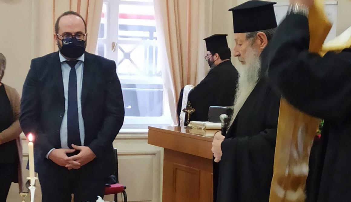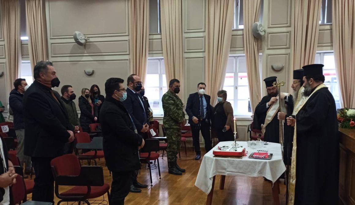 Ο Γενικός Γραμματέας Αιγαίου και Νησιωτικής Πολιτικής κ. Μανώλης Κουτουλάκης, την Παρασκευή 4.3.2022, στην έδρα της Γενικής Γραμματείας στη Μυτιλήνη, σε εκδήλωση για τη στοχοθεσία και τον προγραμματισμό του 2022, έκοψε την πίτα των εργαζομένων. Στην εκδήλωση πραγματοποίησε αγιασμό, ο Σεβασμιότατος Μητροπολίτης Μυτιλήνης, Ερεσού και Πλωμαρίου, κκ Ιάκωβος.
