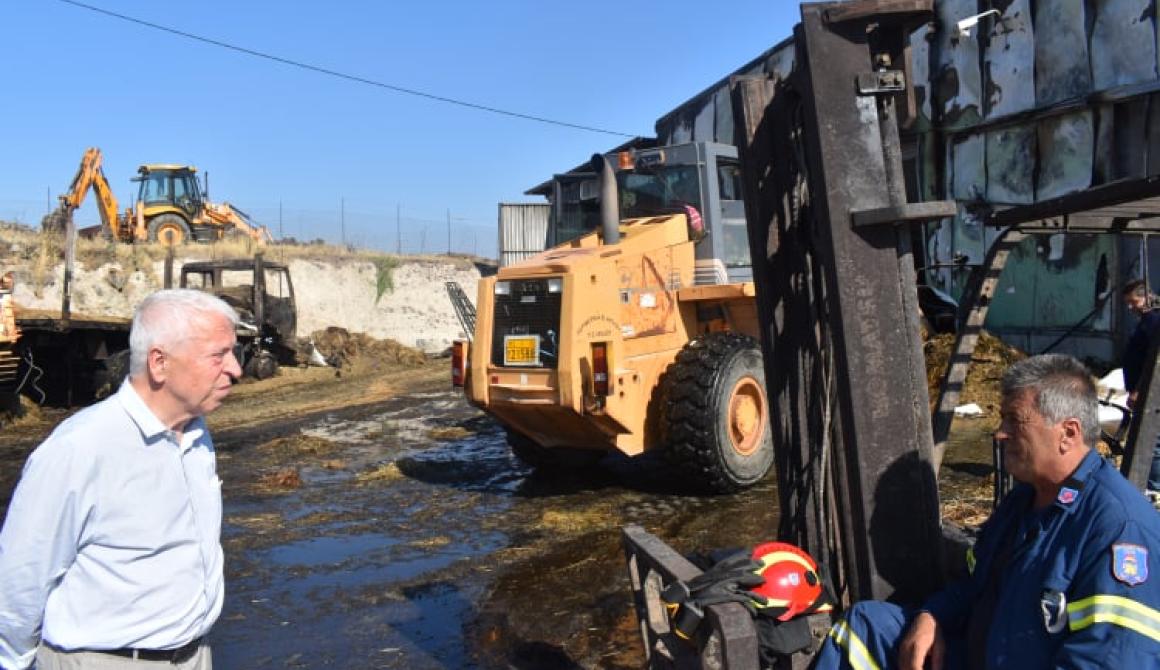Φορτηγά και μηχανήματα της Περιφέρειας αλλά και στελέχη της Πολιτικής Προστασίας βρίσκονται στις εγκαταστάσεις του Συνεταιρισμού και συνδράμουν στην προσπάθεια της Πυροσβεστικής Υπηρεσίας για την κατάσβεση της φωτιάς και τον καθαρισμό του χώρου.