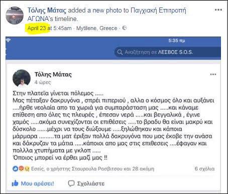 Το 2018 ο Απόστολος Μάτας μετείχε σε αντιμεταναστευτικές συγκεντρώσεις στη Λέσβο, γράφοντας μάλιστα στο fb σχόλια τότε όπως ότι «στην πλατεία γίνεται πόλεμος. Μας πέταξαν δακρυγόνα, σπρέι πιπεριού, αλλά ο κόσμος όλο αυξάνει…ήρθε η νεολαία από τα χωριά για συμπαράστασή μας …και κάναμε επίθεση από όλες στις πλευρές, έπεσαν νερά …και βεγγαλικά έγινε χαμός …ακόμα συνεχίζονται οι επιθέσεις …το βράδυ θα είναι πολύ μακρύ και δύσκολο… μέχρι να τους διώξουμε…ξηλώθηκαν και κάποια μάρμαρα…τα Ματ έριξαν πολλά δακρυγόνα που μας έκοβε την ανάσα και δάκρυζαν τα μάτια … κάποιοι από μας στις επιθέσεις …έφαγαν και πολλά χτυπήματα με γκλομπ …Οποιος μπορεί να έρθει μαζί μας!». ενώ σε αναρτήσεις στα σόσιαλ μίντια έβγαζε μένος κατά των αλλοδαπών.