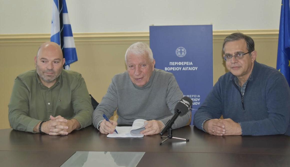 Ο Περιφερειάρχης Βορείου Αιγαίου Κωνσταντίνος και ο Διευθυντής του Μουσείου Φυσικής Ιστορίας Απολιθωμένου Δάσους Λέσβου Νίκος Ζούρος, υπέγραψαν σήμερα την τριμερή Προγραμματική Σύμβαση ( συμμετέχει και ο Δήμος Δυτικής Λέσβου) για την Επισκευή του Κτιρίου του Εκπαιδευτικού Κέντρου Άντισσας (Πρώην Γηροκομείου), προϋπολογισμού 100.000€, παρουσία του Αντιπεριφερειάρχη Τεχνικών Έργων Χρυσόστομου Χατζηκυριαζή.