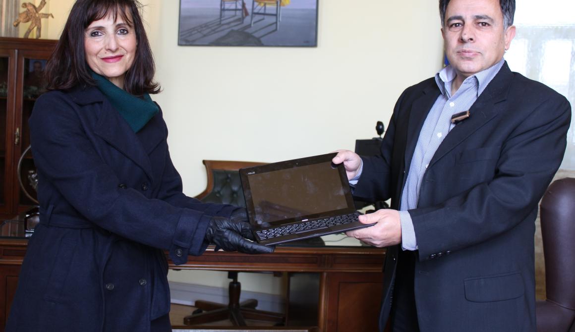 Σήμερα, Τρίτη 7 Απριλίου 2020, ο Δήμαρχος Μυτιλήνης, Στρατής Κύτελης, ανταποκρινόμενος στα αιτήματα των Διευθυντών των σχολείων, παρέδωσε στη Διευθύντρια του Λυκείου Αγιάσου, Γιώτα Φράγκου, και στο Διευθυντή του Α' Γυμνασίου Μυτιλήνης, Αλέξανδρο Κουτσαντώνη, tablets με αποσπώμενα πληκτρολόγια, τα οποία θα δοθούν σε μαθητές με οικονομική δυσχέρεια, καθώς τα σχολεία έχουν κλείσει και η εξ αποστάσεως online εκπαίδευση είναι αναγκαία λύση για τους μαθητές.