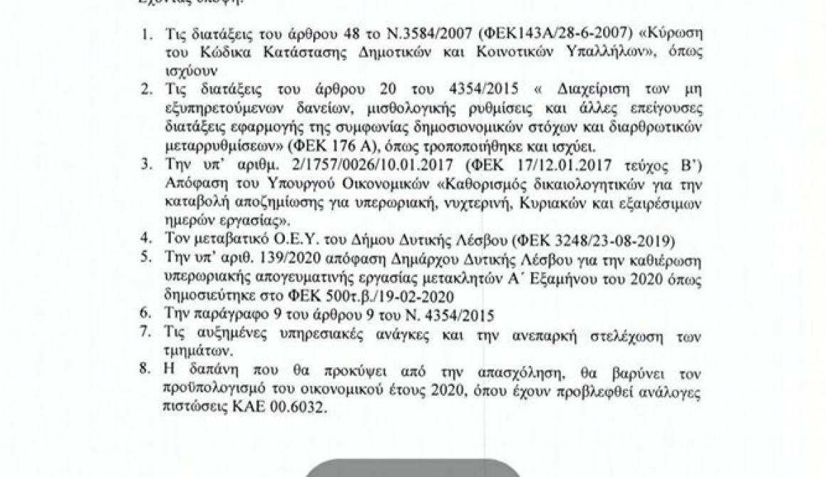 Όμως εν μέσω πανδημίας του Κορονοϊου αποτελεί πρόκληση να δίνονται τέτοιου είδους υπερωρίες όταν την ίδια ώρα συμπολίτες μας , επαγγελματίες και εργαζόμενοι, έχουν χάσει την εργασία τους -τα εισοδήματα τους.
