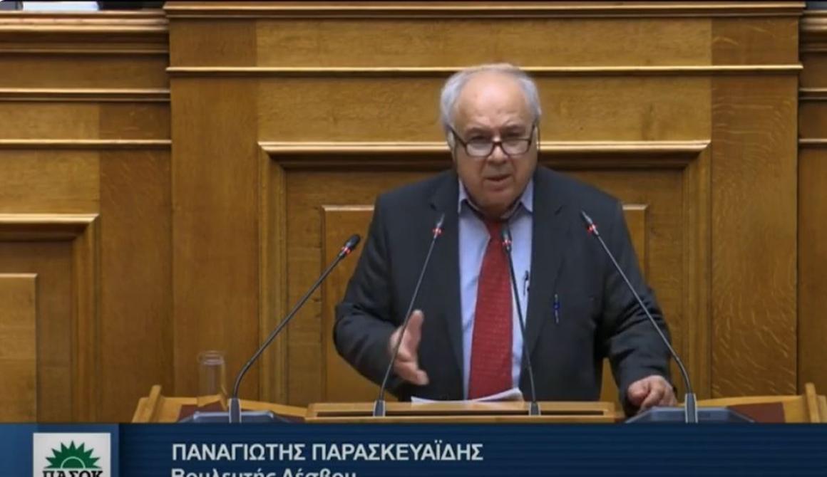 Ο Βουλευτής Ν. Λέσβου, του ΠΑΣΟΚ - ΚΙΝΑΛ, Παναγιώτης Παρασκευαΐδης, χθες 7/3/2024, μιλώντας στην Ολομέλεια της Βουλής στα πλαίσια της συζήτησης για το Νομοσχέδιο για την Παιδεία και τα Μη Κρατικά Πανεπιστήμια, έθεσε θέμα αντισυνταγματικότητας του νομοσχεδίου και ελλείψει Αναφοράς για το Εθνικής Σημασίας Περιφερειακό Πανεπιστήμιο Αιγαίου και την στηριξή του με νέες Σχολές, σε Αντίθεση με το άλλο Εθνικής Σημασίας Δημοκρίτειο Πανεπιστήμιο Θράκης που ενισχύεται σημαντικά σύμφωνα με την κυβερνητική πρόταση, έθεσε την ανάγκη στήριξης του για λόγους εθνικούς και πρότεινε την ίδρυση Ιατρικής Σχολής που θα εξασφαλίσει νέο φοιτητικό δυναμικό στο χώρο του Αιγαίου.