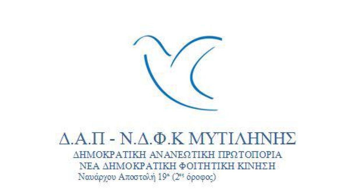 Η ΔΑΠ-ΝΔΦΚ Μυτιλήνης με τις παραπάνω προτάσεις θεωρεί ότι μπορεί να λυθεί το πρόβλημα αυτών των παιδιών και καλεί όλους τους φοιτητές σε Γενικές Συνελεύσεις και οργάνωση για την λύση αυτών των θεμάτων με επιχειρήματα, διάλογο και προτάσεις και όχι με κλεισίματα τμημάτων και καταλήψεις.