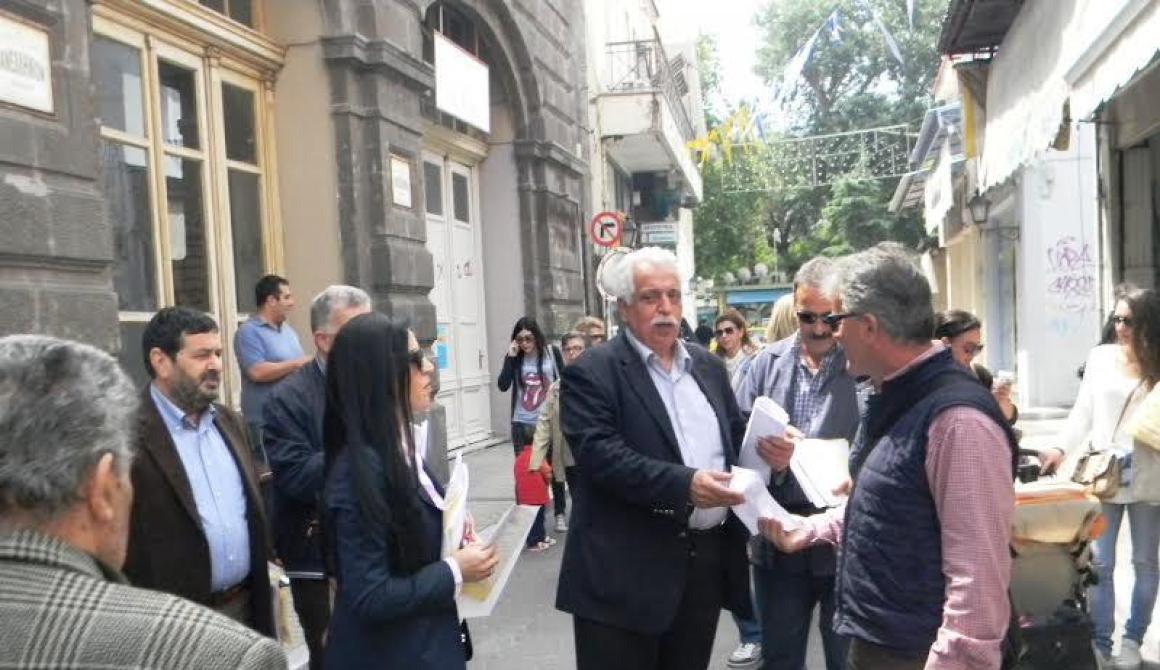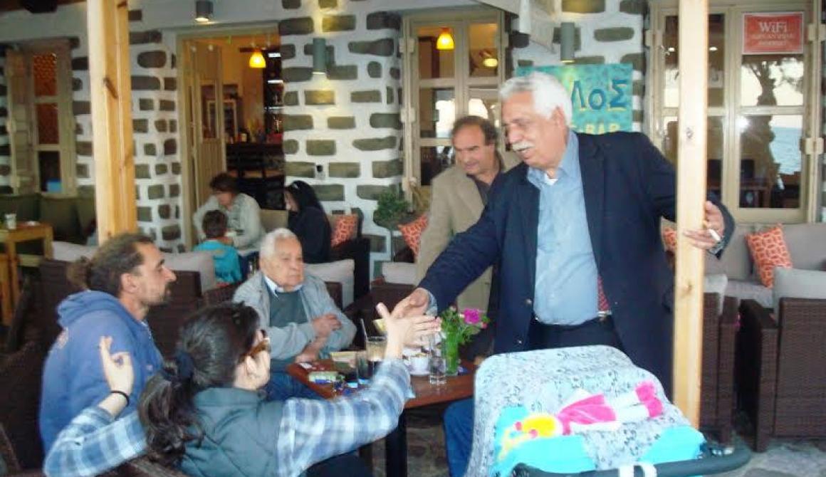 Συνεχίζοντας τις περιοδείες του στα χωριά της Λέσβου, ο Υποψήφιος Περιφερειάρχης Βορείου Αιγαίου κ. Νάσος Γιακαλής επισκέφτηκε διαδοχικά το Σάββατο το Πλωμάρι, την Πλαγιά και τον Τρύγωνα, την Κυριακή την Ερεσό, τον Μεσότοπο και την Άγρα και σήμερα Δευτέρα την αγορά της πόλης της Μυτιλήνης, συνοδευόμενος από τον Υποψήφιο Αντιπεριφερειάρχη Λέσβου κ. Ηρακλή Βερβέρη και υποψήφιους Περιφερειακούς συμβούλους του συνδυασμού «Ισχυρό Βόρειο Αιγαίο».