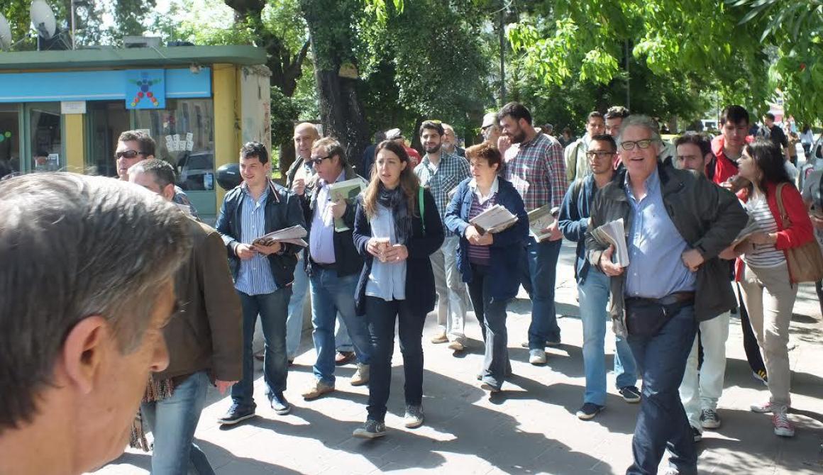 To Σάββατο 3 Μαΐου 2014 ο υποψήφιος Δήμαρχος Λέσβου Στράτος Γεωργούλας συνοδευόμενος από υποψηφίους Δημοτικούς Συμβούλους του συνδυασμού «ο Άλλος Δρόμος» περιόδευσαν στην αγορά της Μυτιλήνης.