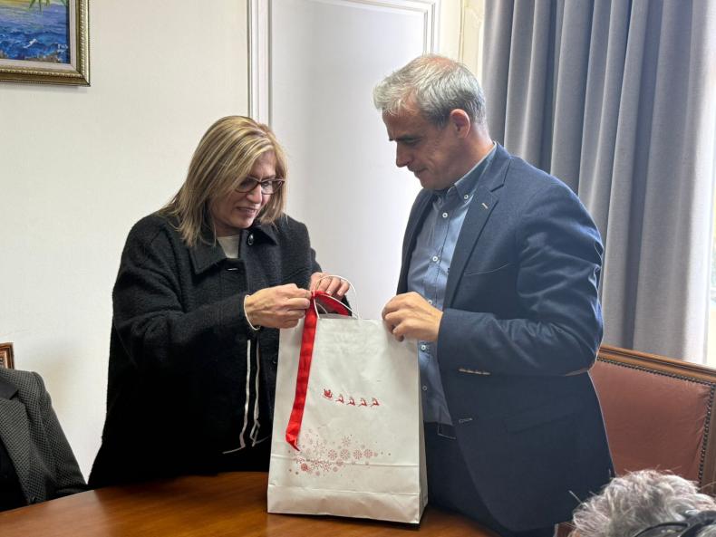 Πλεκτές ευχές και ανθρώπινη ζεστασιά στο Δημαρχείο: Επίσκεψη του ΚΑΠΗ Μυτιλήνης στον Παναγιώτη Χριστόφα