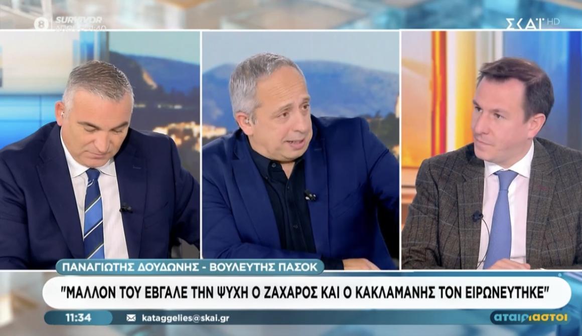 Στην εκπομπή «Αταίριαστοι» του τηλεοπτικού σταθμού ΣΚΑΪ παραχώρησε συνέντευξη ο Βουλευτής Επικρατείας του ΠΑΣΟΚ-Κινήματος Αλλαγής, Παναγιώτης Δουδώνης, ασκώντας κριτική στην κυβέρνηση και στον Υπουργό Δικαιοσύνης, Γιώργο Φλωρίδη, ενώ έθεσε επίσης επιτακτικά το ζήτημα της ασφάλειας των εργαζομένων.