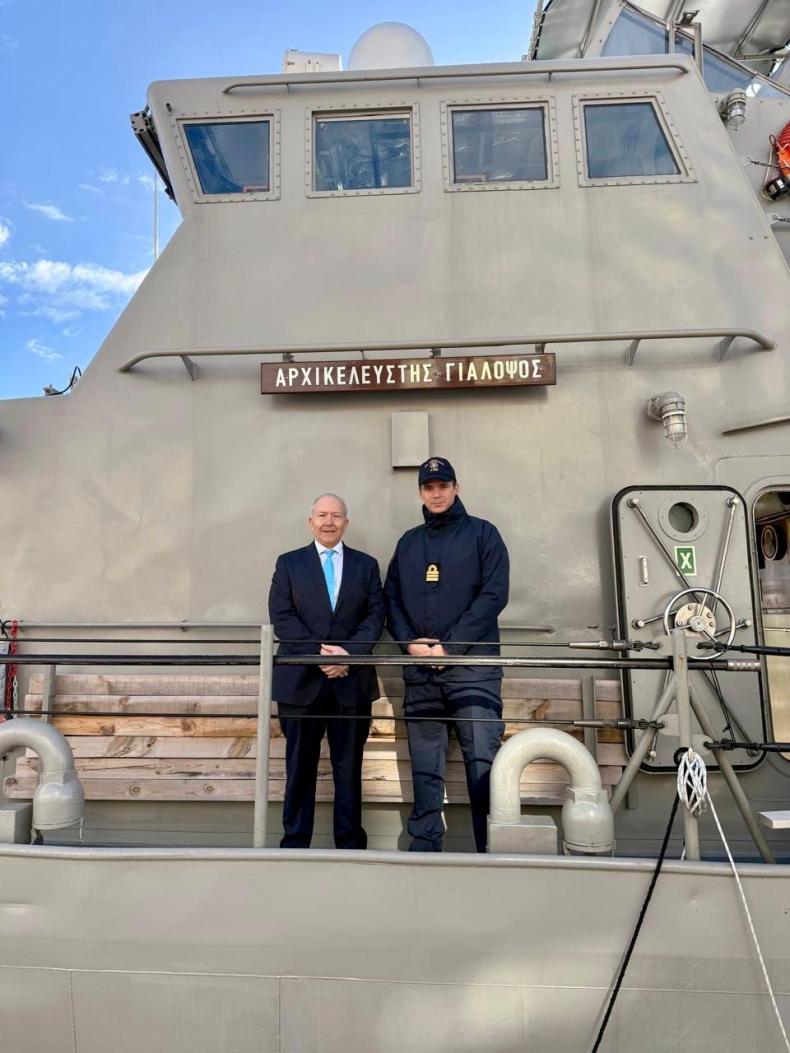 Παράλληλα, επισκέφθηκε το νέο Περιπολικό του Πολεμικού Ναυτικού που εδρεύει στη Μυτιλήνη, το «ΑΡΧΙΚΕΛΕΥΣΤΗΣ ΓΙΑΛΟΨΟΣ», το οποίο φέρει το όνομα του πεσόντος στα Ίμια αξιωματικού Έκτορα Γιαλοψού.