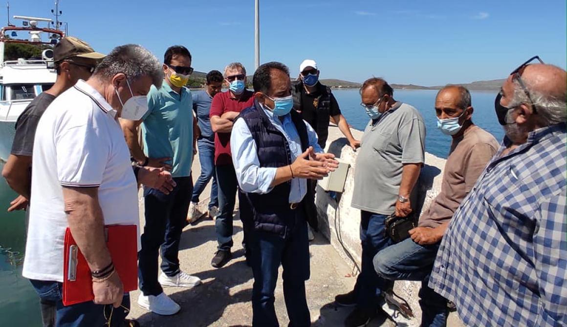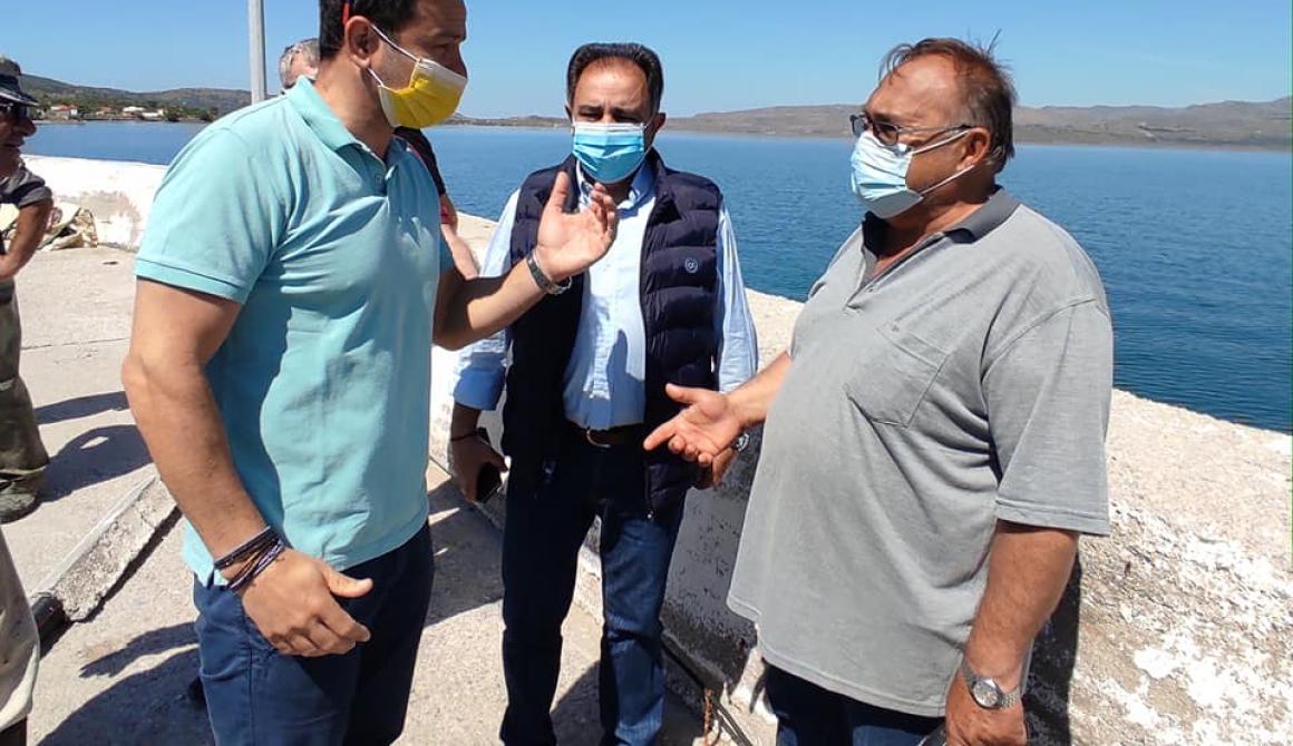 Τον συνόδευαν ο Αντιδήμαρχος Στρατής Τζίμης, ο Αντιπρόεδρος του Λιμενικού Ταμείου Κώστας Παπαδόπουλος, ο Πρόεδρος του Πολιχνίτου Δημήτρης Γιαναρελλης, ο εργοδηγός του Λιμενικού Ταμείου Γιώργος Παπουτσανης, ο δημοτικος σύμβουλος του Δήμου Δυτικης Λέσβου και μέλος του Δ.Σ του Λιμενικού Ταμείου Γιωργος Καραθανασης και ο δημοτικός σύμβουλος του Δήμου Δυτικής Λέσβου Χρυσόστομος Χατζηκυριαζης.