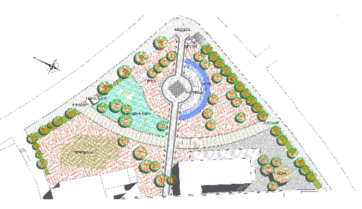 Το Ηρώον Πεσόντων, επανατοποθετείται στην ίδια θέση με τη σημερινή. Στο χώρο μεταξύ των δυο προσβάσεων, προς τη βόρεια πλευρά, διαμορφώνεται η Παιδική Χαρά 210 τ.μ., η οποία θα επιστρωθεί με ελαστικό δάπεδο ασφαλείας. Θα τοποθετηθούν παιχνίδια-όργανα, όπως εικονίζονται στο συνημμένο σχέδιο, ενώ θα υπάρχουν προς την πλευρά των οικοδομημάτων δύο ξύλινες πέργκολες.