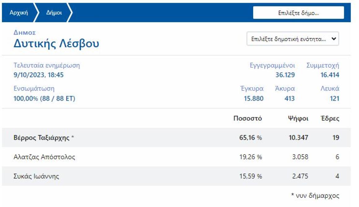 Τελικά αποτελέσματα στο ΔΗΜΟ ΔΥΤΙΚΗΣ ΛΕΣΒΟΥ - Αποτελέσματα ανά εκλογικό τμήμα