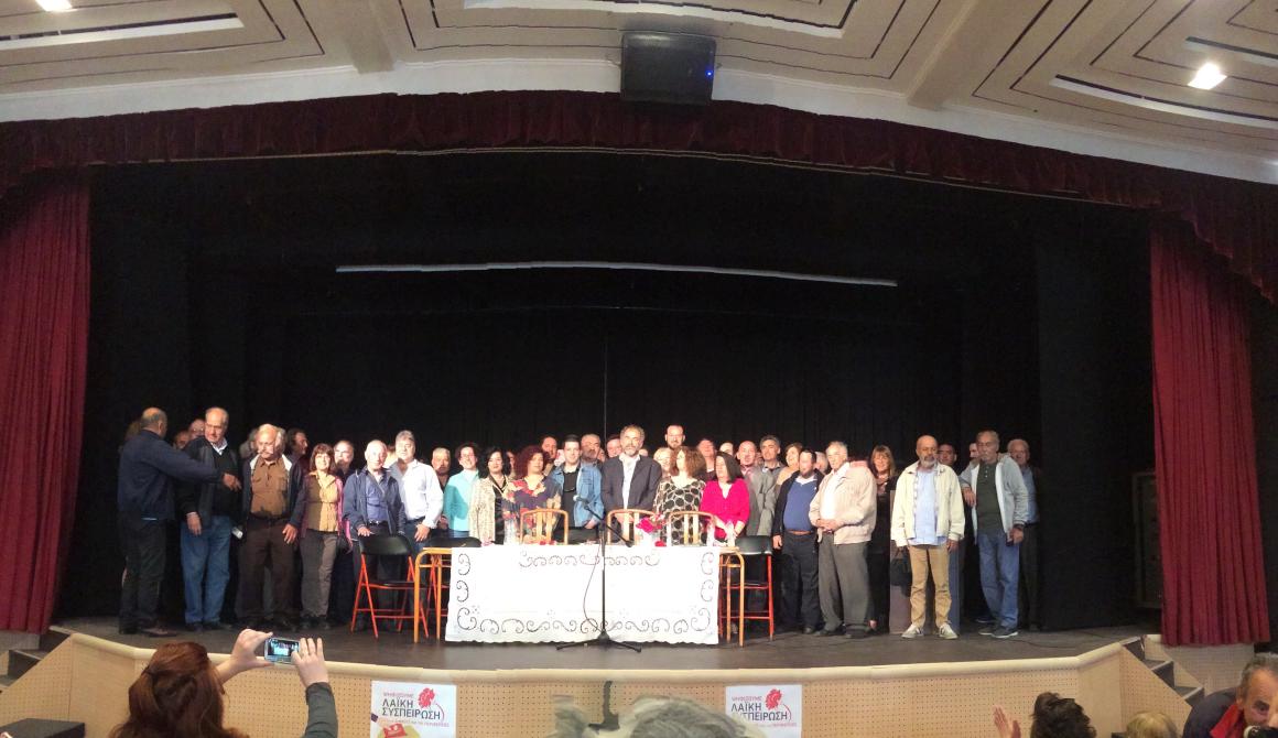 Τονίστηκε ότι το ψηφοδέλτιο της Λαϊκής Συσπείρωσης αποτελείται από ένα μείγμα παλιών έμπειρων αυτοδιοίκητων στελεχών με τεράστιο έργο στην αυτοδιοίκηση και νέων που κάτω από αντίξοες συνθήκες επέλεξαν να μείνουν στο τόπο τους και να παλέψουν για μια καλύτερη ζωή. Είναι ένας συνδυασμός που οι υποψήφιοι του είναι αγωνιστές και ανήκουν σε όλους τους πολιτικούς χώρους και στηρίζεται από το ΚΚΕ.