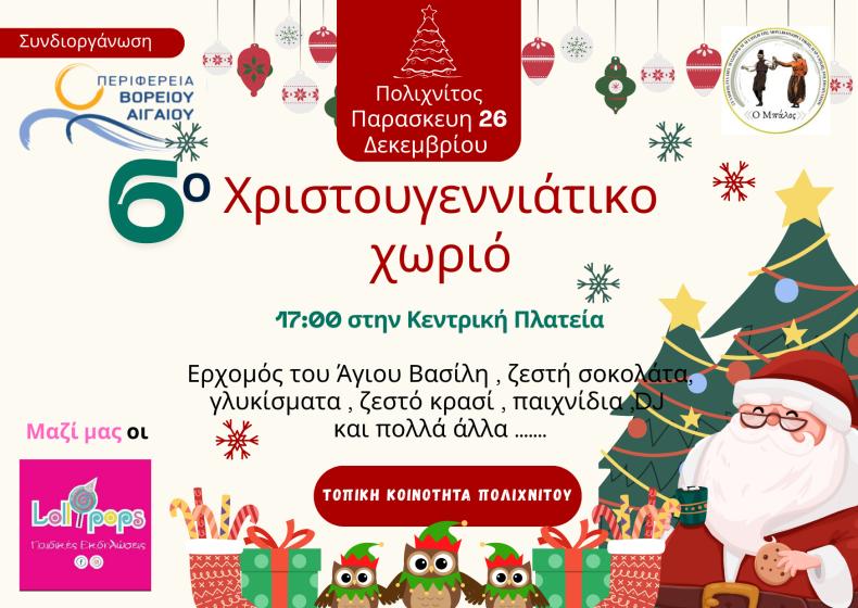 Παρασκευή 26 Δεκεμβρίου – 6ο Χριστουγεννιάτικο Χωριό Πολιχνίτου