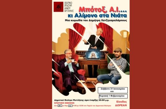 update Το Θεατρικό Εργαστήρι του Δήμου Μυτιλήνης ανακοινώνει ότι οι προγραμματισμένες παραστάσεις του έργου «Μπότοξ, Α.Ι. ... κι αλίμονο στα νιάτα», που επρόκειτο να πραγματοποιηθούν το Σάββατο 31 Ιανουαρίου και την Κυριακή 1 Φεβρουαρίου στο Δημοτικό Θέατρο Μυτιλήνης, δεν θα πραγματοποιηθούν, λόγω...
