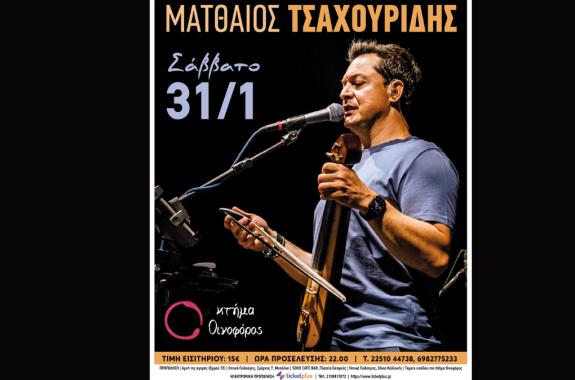 Ματθαίος Τσαχουρίδης στη Μυτιλήνη: Μία και μοναδική βραδιά στο Κτήμα Οινοφόρος – Σάββατο 31 Ιανουαρίου 2026