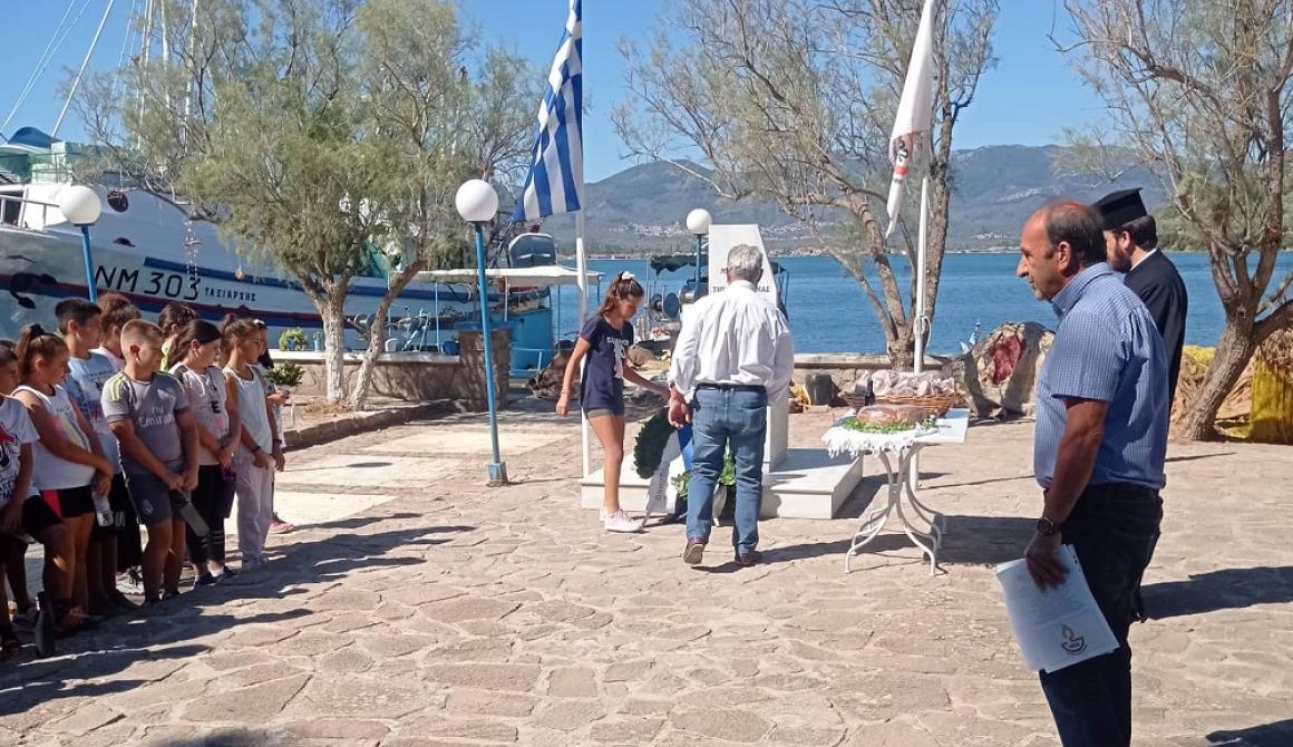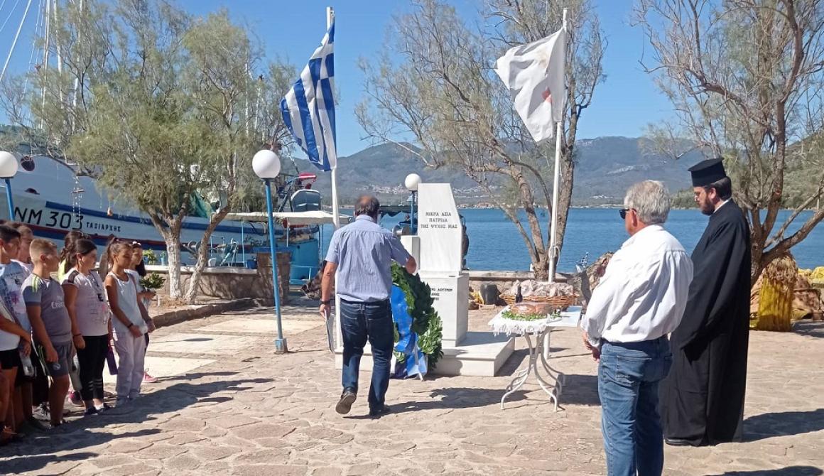 Αυτά είπε ο πρόεδρος του Συλλόγου Μικρασιατών της Σκάλας Λουτρών «Το Δελφίνι» εκ μέρους του Δ.Σ. του Συλλόγου μπροστά στο μνημείο «Μικρά Ασία πατρίδα της ψυχής μας» της Σκάλας Λουτρών, την Τετάρτη 14 Σεπτεμβρίου, σε μια εκδήλωση που πραγματοποιήθηκε από κοινού με το Δημοτικό σχολείο και την κοινότητα Λουτρών, παρουσία αρκετών κατοίκων της περιοχής μας. Είχε προηγηθεί η τέλεση επιμνημόσυνης δέησης και αρτοκλασίας από τον ιερέα κ. Ευστράτιο Κομνηνό και κατάθεση στεφάνων από τον πρόεδρο της Κοινότητας κ. Β. Μαμώλη, την διευθύντρια του Σχολείου κ. Ε. Χιωτέλλη και τον πρόεδρο του Συλλόγου κ. Δ. Παπαχρυσό.