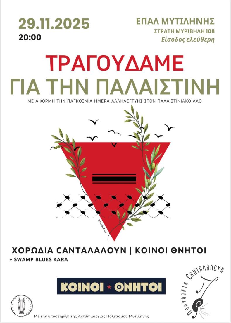 29/11/2025, at 20:00 in the event hall of EPAL Mytilene, 108 Stratí Myrivíli