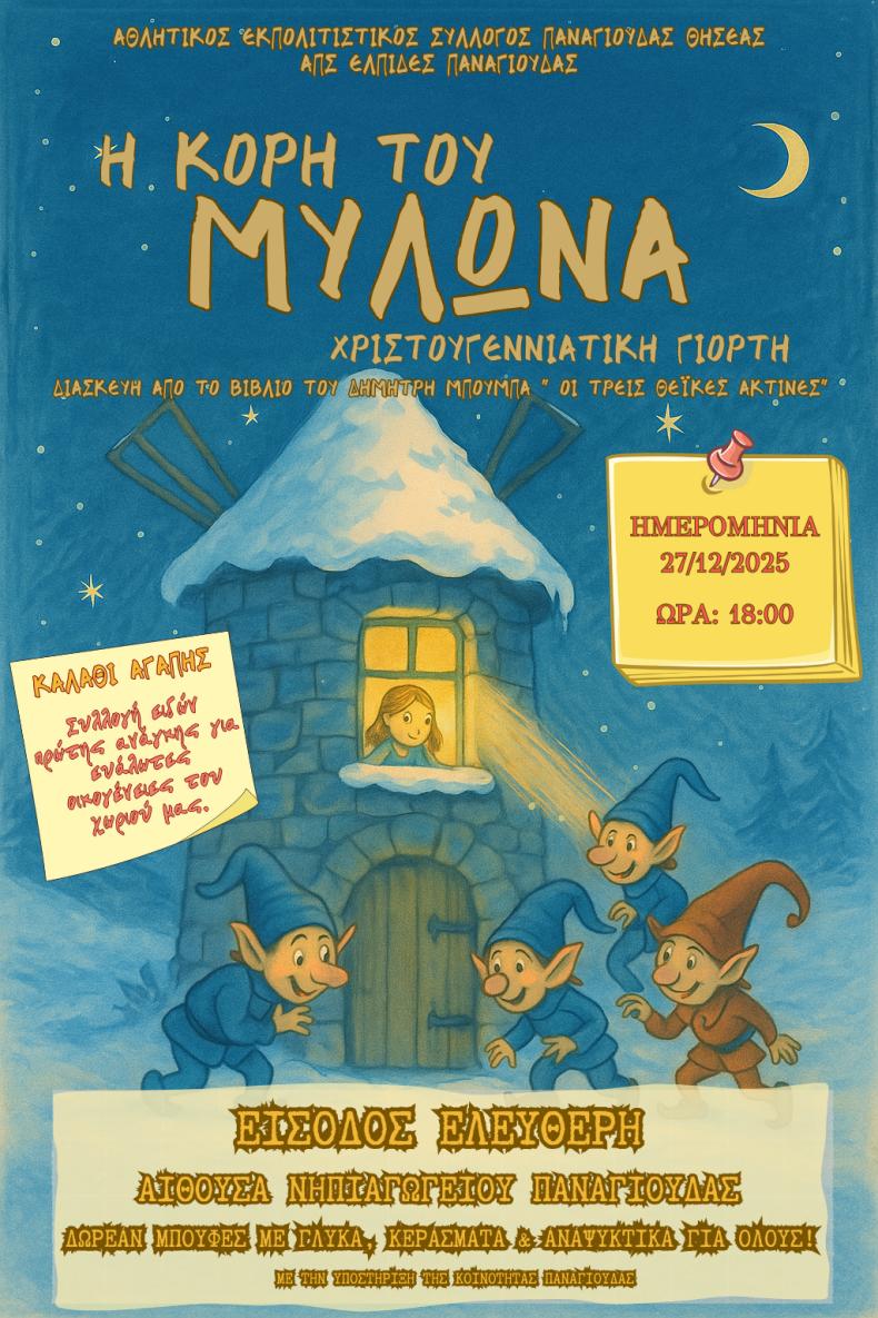 Η Παναγιούδα φορά τα γιορτινά της και στέλνει ένα καθαρό, ανθρώπινο μήνυμα: τα Χριστούγεννα δεν είναι βιτρίνα, είναι πράξη. Την Παρασκευή 27 Δεκεμβρίου 2025, στις 18:00, στην αίθουσα εκδηλώσεων του Νηπιαγωγείου Παναγιούδας, πραγματοποιείται η Χριστουγεννιάτικη Γιορτή Παναγιούδας, μια εκδήλωση που συνδυάζει πολιτισμό, παιδεία και κοινωνική προσφορά.