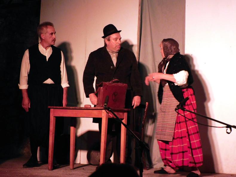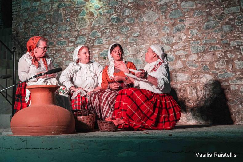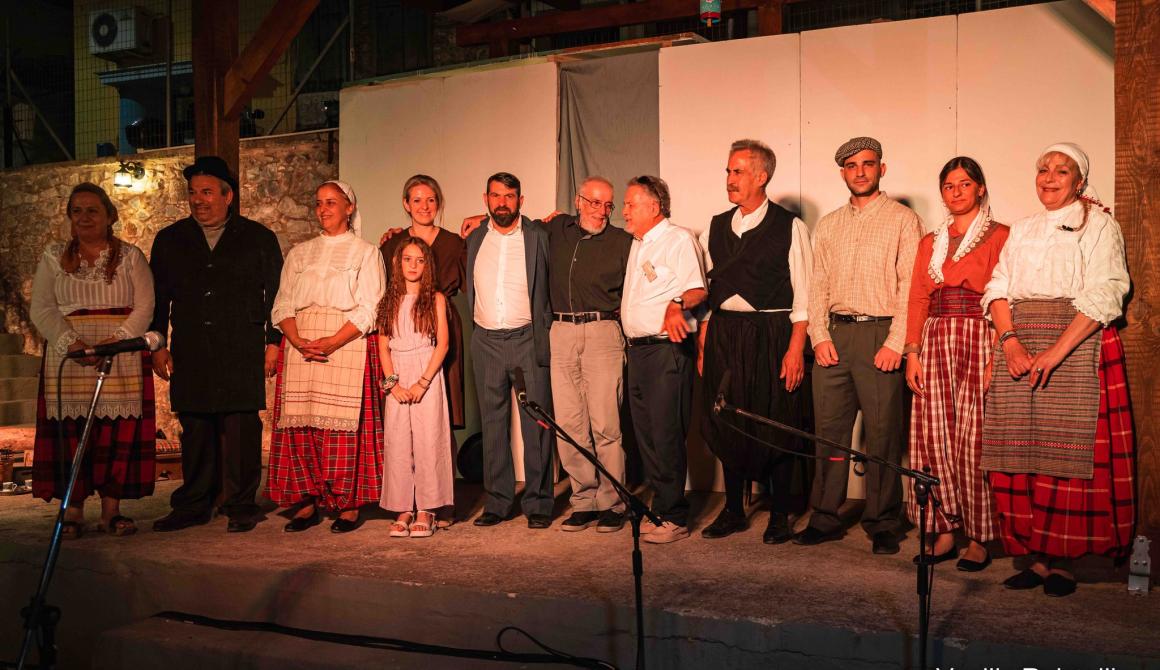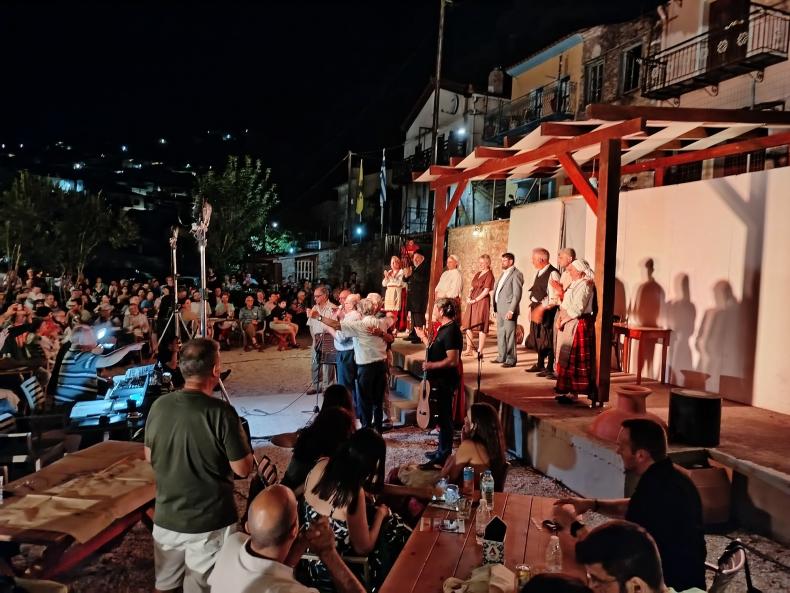 Αφού προηγήθηκαν δυο ενδιαφέρουσες εισηγήσεις από τον κ. Θόδωρο Γραμματά, καθηγητή θεατρολογίας στο ΕΚΠΑ, με θέμα «Η γλωσσική ποικιλία της Αγιάσου και η θεατρική της αξιοποίηση», και τον κ. Γιάννη Δ. Παπάνη, φιλόλογο, πρώην Σύμβουλο Εκπαίδευσης ελληνοπαίδων εξωτερικού, με θέμα «Αγιάσος Λέσβου: Μια «αρχαιοπρεπής κοινωνία» υπό το πρίσμα της γλωσσικής έκφρασης», ακολούθησε θεατρική παράσταση από τη θεατρική ομάδα του Αναγνωστηρίου Αγιάσου με το έργο του Γιάννη Δ. Παπάνη «Έκουψι γιου Κοπ’ς», σε σκηνοθεσία Βασίλη Χατζηελευθερίου.
