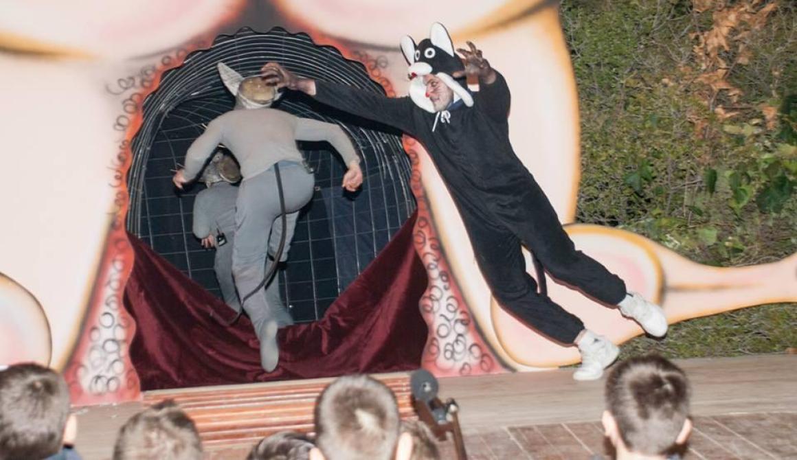 Την Πέμπτη, 27 Φεβρουαρίου 2014, στις 9:30 μμ, στο πλαίσιο της εκδήλωσης που συνδιοργανώθηκε από την Περιφέρεια Βορείου Αιγαίου και το Δήμο Λέσβου στο Δημοτικό Θέατρο Μυτιλήνης με τον τίτλο «Τα Γιούνια», παρουσιάστηκε το καρναβαλικό μονόπρακτο των Παναγιώτη Μ. Κουτσκουδή και Αντώνη Μηνά «Μαθήματα όλμου» στο οποίο έπαιξαν οι Μαρία Ε. Αϊβαλιώτου (ταγματαρχέσα), Δήμητρα Μπουγατσά (επιλοχίας), Μυρσίνη Κουτσκουδή-Βουρλή, Σταυρούλα Βεγιάζη, Μαρία Πετεινέλη, Μαρία Χατζηχρυσάφη, Δήμητρα Γεωργαντή (στρατιωτίνες). Οι κατασκευές ήταν του Λευτέρη Καμπιρέλη.