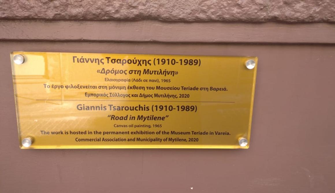 Απόψε, Παρασκευή 21 Αυγούστου 2020 και ώρα 21:00, θα πραγματοποιηθούν τα εγκαίνια και ο φωτισμός αντιγράφου του πίνακα του μεγάλου ζωγράφου Γιάννη Τσαρούχη με τίτλο «Δρόμος στη Μυτιλήνη» (ή «Η οδός Αλκαίου της Μυτιλήνης»), το οποίο έχει τοποθετηθεί στην οδό Αλκαίου.