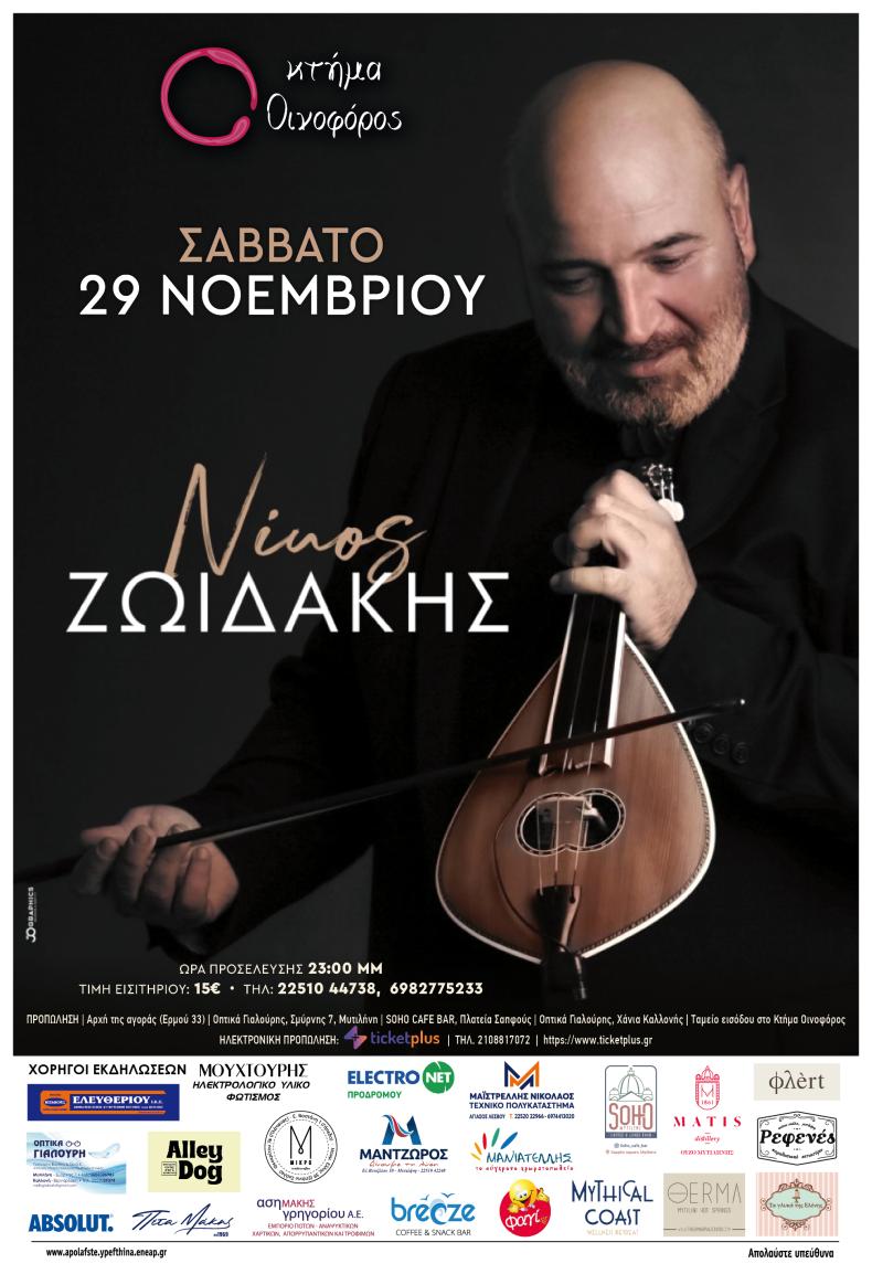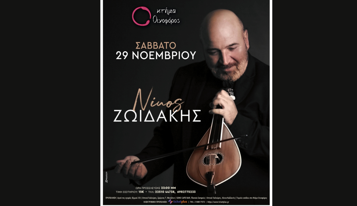 Στο Κτήμα Οινοφόρος ετοιμάζονται να… τρέξουν ρεύματα. Γιατί όταν στη σκηνή ανεβαίνει ο Νίκος Ζωϊδάκης, η ατμόσφαιρα δεν απλώς ζεσταίνεται—ηλεκτρίζεται. Το Σάββατο 29 Νοεμβρίου 2025, ένας από τους κορυφαίους εκπροσώπους της κρητικής μουσικής έρχεται στη Μυτιλήνη για ένα live που υπόσχεται να γίνει σημείο αναφοράς.