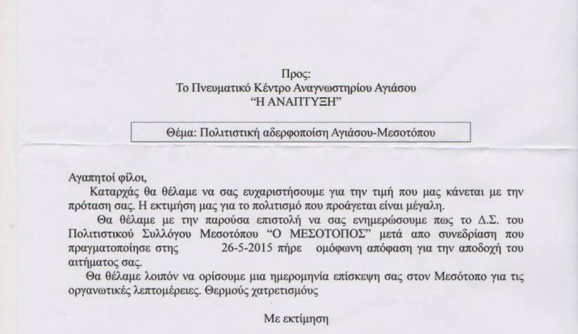 Πολιτιστική Αδελφοποίηση Αγιάσου - Μεσοτόπου
