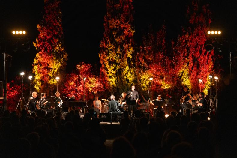 Το ρεπερτόριο της βραδιάς κινήθηκε γύρω από την ενότητα “Στο Σινεμά”, με τον Ξαρχάκο να παρουσιάζει τραγούδια από την πλούσια κινηματογραφική του διαδρομή: “Το Δελφίνι”, “Κόκκινα Φανάρια”, “Λόλα” και άλλα έργα που συνοδεύουν εδώ και δεκαετίες το συλλογικό υποσυνείδητο της ελληνικής ψυχής.