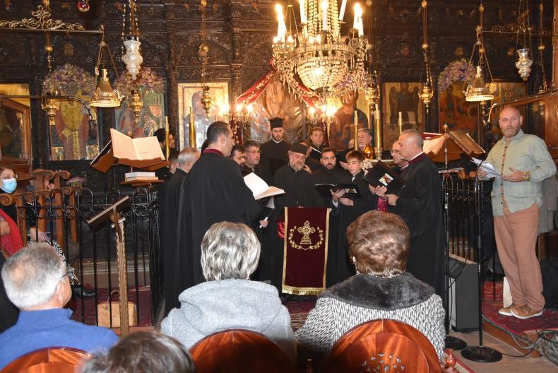 Ανάμεσα στους ύμνους λογοτεχνικά κείμενα, αναμνήσεις από τις γιορτές στην Πέργαμο και στα χωριά της και μαρτυρίες προσφύγων στη Λέσβο για τα ήθη και τα έθιμα του Δωδεκαημέρου στην πατρίδα, διάβαζαν ο Αργύρης Χατζημαλλής και η Φιλιώ Εγγλέζου.