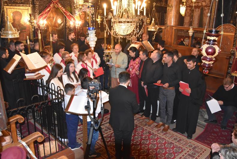 Συμμετείχαν αποδίδοντας εντυπωσιακά ύμνους των Χριστουγέννων και κάλαντα, η Σχολή Βυζαντινής Μουσικής της Ιεράς Μητροπόλεως Μυτιλήνης «Η Αγία Σιών» και η χορωδία παραδοσιακής Μουσικής Λέσβου υπό τη διεύθυνση του κ. Παναγιώτη Τσακύρη. Και η Σχολή Βυζαντινής Μουσικής της Ιεράς Μητροπόλεως Μυτιλήνης «Άγιος Θεόδωρος ο Βυζάντιος» υπό τη διεύθυνση του π. Ευστρατίου Γιουσμά.