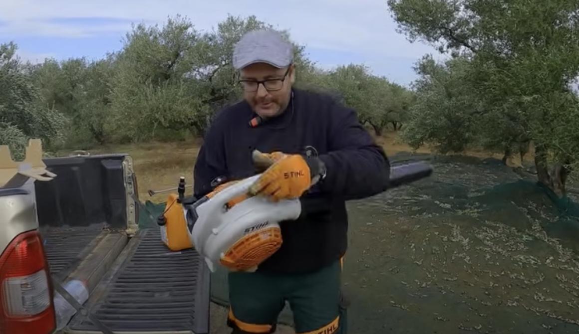 Ένα χρήσιμο εργαλείο για τους ελαιοπαραγωγούς: φυσητήρας βενζίνης για τα φύλλα ελιάς στα πανιά (βίντεο)