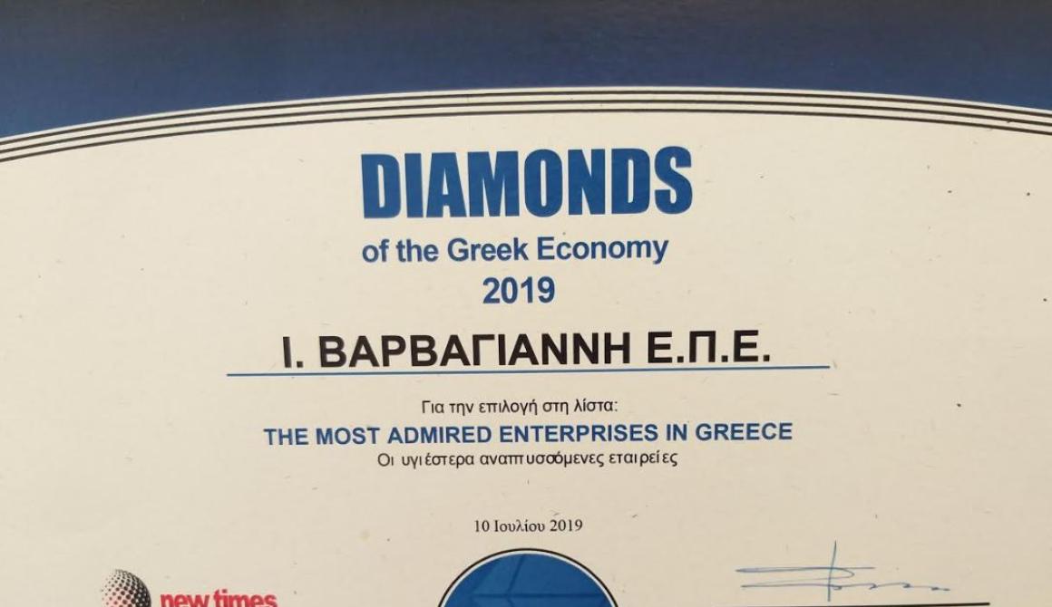 Η εταιρεία μας, Ι. Βαρβαγιάννης ΕΠΕ, συμμετείχε στο 16ο forum Επιχειρηματικής Αριστείας, που πραγματοποιήθηκε την Τετάρτη 10 Ιουλίου 2019 στο Ξενοδοχείο Μεγάλη Βρετάνια, όχι ως ένας απλός συμμετέχων, αλλά ως μία από τις βραβευθείσες εταιρείες των «Diamonds of the Greek Economy 2019”.