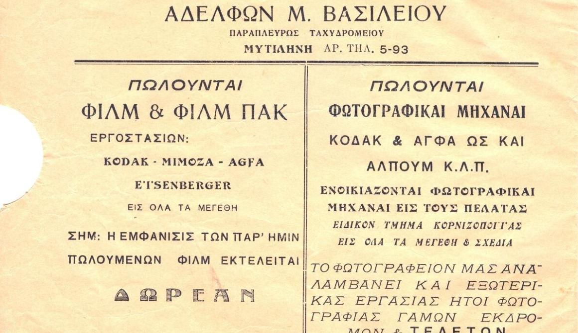 Πρόκειται για τους αδελφούς Ευάγγελο και Στέλιο Βασιλείου που εργάστηκαν για μεγάλο διάστημα μαζί αλλά και χωριστά κατά περιόδους σαν φωτογράφοι στην Μυτιλήνη από το 1926.