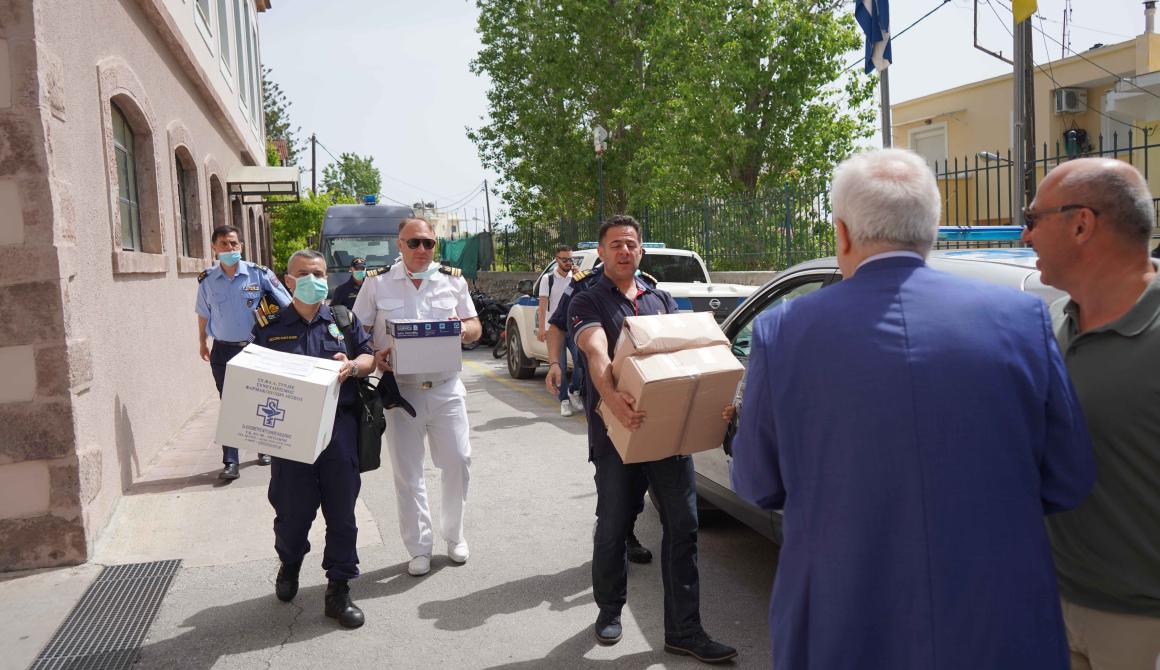 Τα υλικά παραδόθηκαν σήμερα Παρασκευή 15/05 στο Αμφιθέατρο της Περιφερειακής Αστυνομικής Διεύθυνσης Βορείου Αιγαίου από τον Πρόεδρο του Πανελληνίου Φαρμακευτικού Συλλόγου και Πρόεδρο του Φαρμακευτικού Συλλόγου Λέσβου Απόστολο Βαλτά και τον Πρόεδρο του Συνεταιρισμού Φαρμακοποιών Λέσβου Βασίλειο Καμινή, ενώ στην τελετή συμμετείχαν ο Γενικός Περιφερειακός Αστυνομικός Διευθυντής, Υποστράτηγος Ελευθέριος Ντουρουντούς, ο Περιφερειακός Διοικητής Πυροσβεστικής Βορείου Αιγαίου, Αρχιπύραρχος Κωνσταντίνος Θεοφιλόπουλος, ο Αστυνομικός Διευθυντής Λέσβου Ηλίας Βαζούρας ο Αρχιπλοίαρχος Γεώργιος Σκανδάλης, ο Πλωτάρχης κ. Κουλίκα, ο Πρόεδρος της Ένωσης Αστυνομικών Υπαλλήλων Λέσβου Βασίλης Ροδόπουλος, ο Πρόεδρος της Ένωσης Προσωπικού Λιμενικού Λέσβου Φώτης Γαρουφαλιάς και ο Πρόεδρος της Ένωσης Υπαλλήλων Πυροσβεστικού Σώματος, Γιώργος Ντίνος.