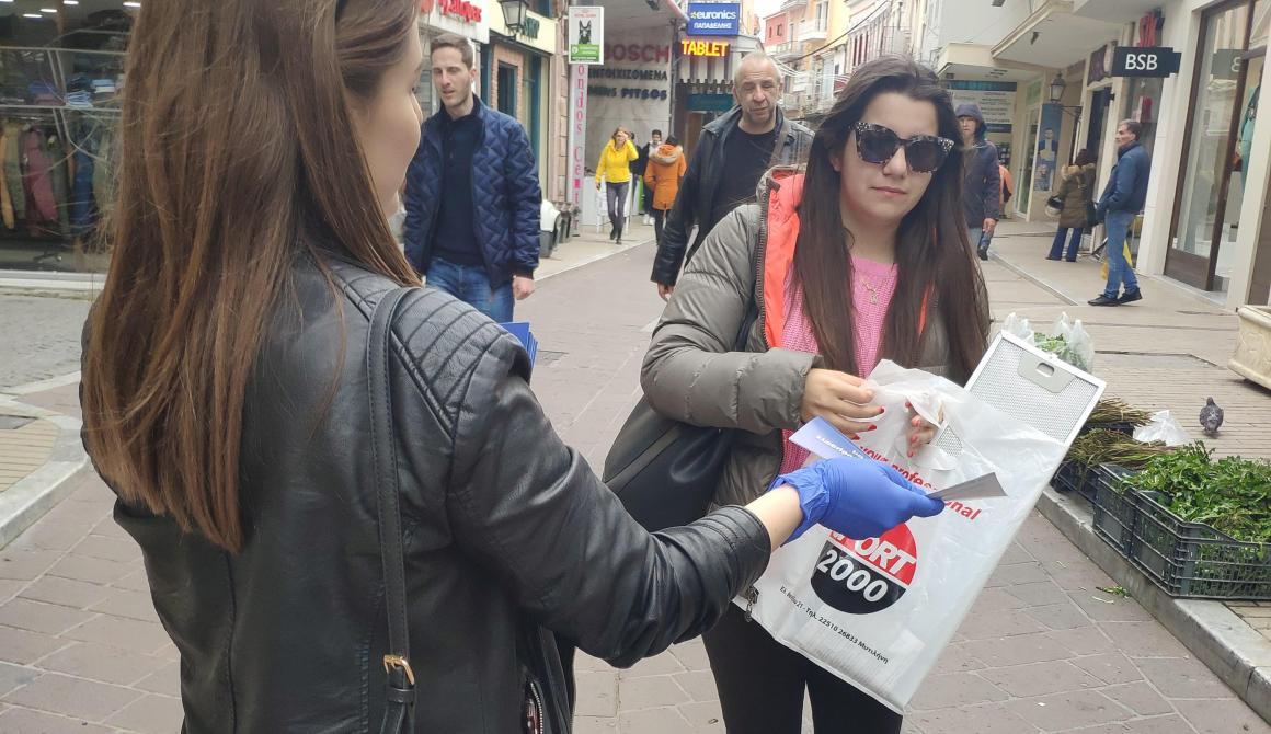 Ενημερωτικά φυλλάδια με συμβουλές προστασίας από τον κορoναϊό, αλλά και απαντήσεις στις πιο συνηθισμένες και σημαντικές ερωτήσεις μοίρασαν σήμερα το πρωί στο κέντρο της πόλης υπάλληλοι του Δήμου Μυτιλήνης σε συνεργασία με την Υπηρεσία Πολιτικής Προστασίας.