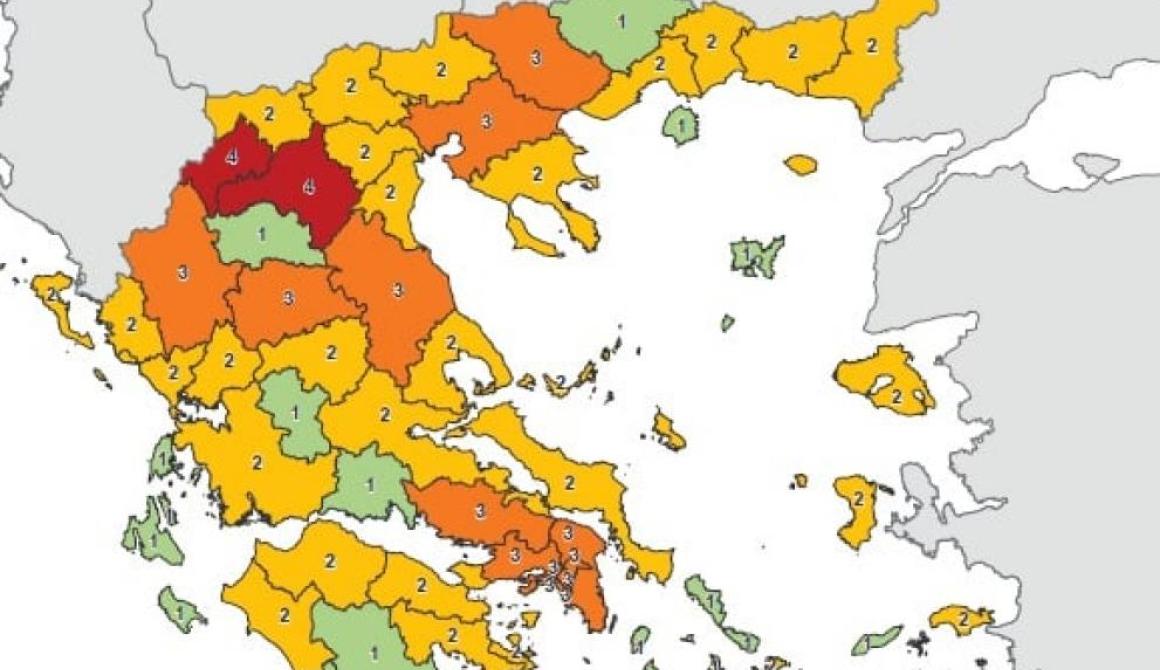 2 Περιφερειακές Ενότητες στο επίπεδο 4( Αυξημένου Κινδύνου) καμία περιοχή δεν ήταν σε αυτό το βαθμό συναγερμού πριν 14 μέρες.