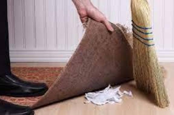 Γράφει η Γεωργία Λυμπέρη Σε πρώτο πρόσωπο "Κάτω απ' το χαλί"! Εκεί που η κακή νοικοκυρά ή ο κακός νοικοκύρης σπρώχνει τα σκουπιδάκια, τα σκουπίδια, καταχωνιάζει τη σαβούρα. Τάπητας, χαλί, φλοκάτη, κουρελού, χράμι... Μην ξεχάσουμε τις μοκέτες, συνήθως συνθετικές, αλλά πιο εύχρηστες για τις αστικές...
