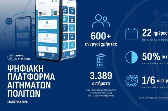 Πάνω από 3.300 αιτήματα σε έναν χρόνο – ο Δήμος Μυτιλήνης «ακούει» τους δημότες ψηφιακά