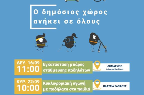 Κυριακή 22 Σεπτεμβρίου 2024 Παγκόσμια ημέρα χωρίς αυτοκίνητο. Πλατεία Σαπφούς Μυτιλήνη 10:00 Δράσεις στην Πλατεία Σαπφούς. Στα πλαίσια της Ευρωπαϊκής εβδομάδας Κινητικότητας, γιορτάστηκε η τελευταία μέρα της εβδομάδας αφιερωμένη στην "Παγκόσμια Ημέρα χωρίς αυτοκίνητο". Με απόλυτη επιτυχία και πλήθος...