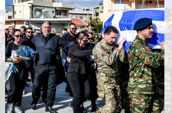 Σκηνές άφατου πόνου στο Τυμπάκι, όπου συγγενείς και φίλοι αποχαιρέτησαν τον 19χρονο Ραφαήλ Γαλυφιανάκη, που σκοτώθηκε σε πεδίο βολής στη Ρόδο. Λευκά τριαντάφυλλα, ελληνική σημαία και ένα χωριό συντετριμμένο.