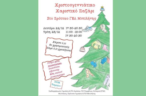 Κοινωνία | 15/12/2025 - 12:49 Χριστουγεννιάτικη αλληλεγγύη στο Πρότυπο ΓΕΛ Μυτιλήνης: Ένα παζάρι που μοιράζει ζεστασιά, όχι τιμές Χριστουγεννιάτικο Χαριστικό Παζάρι στο Πρότυπο ΓΕΛ Μυτιλήνης: ρούχα, παπούτσια, αξεσουάρ και είδη σπιτιού 100% δωρεάν σε μια δράση αλληλεγγύης από σχολεία της Λέσβου.